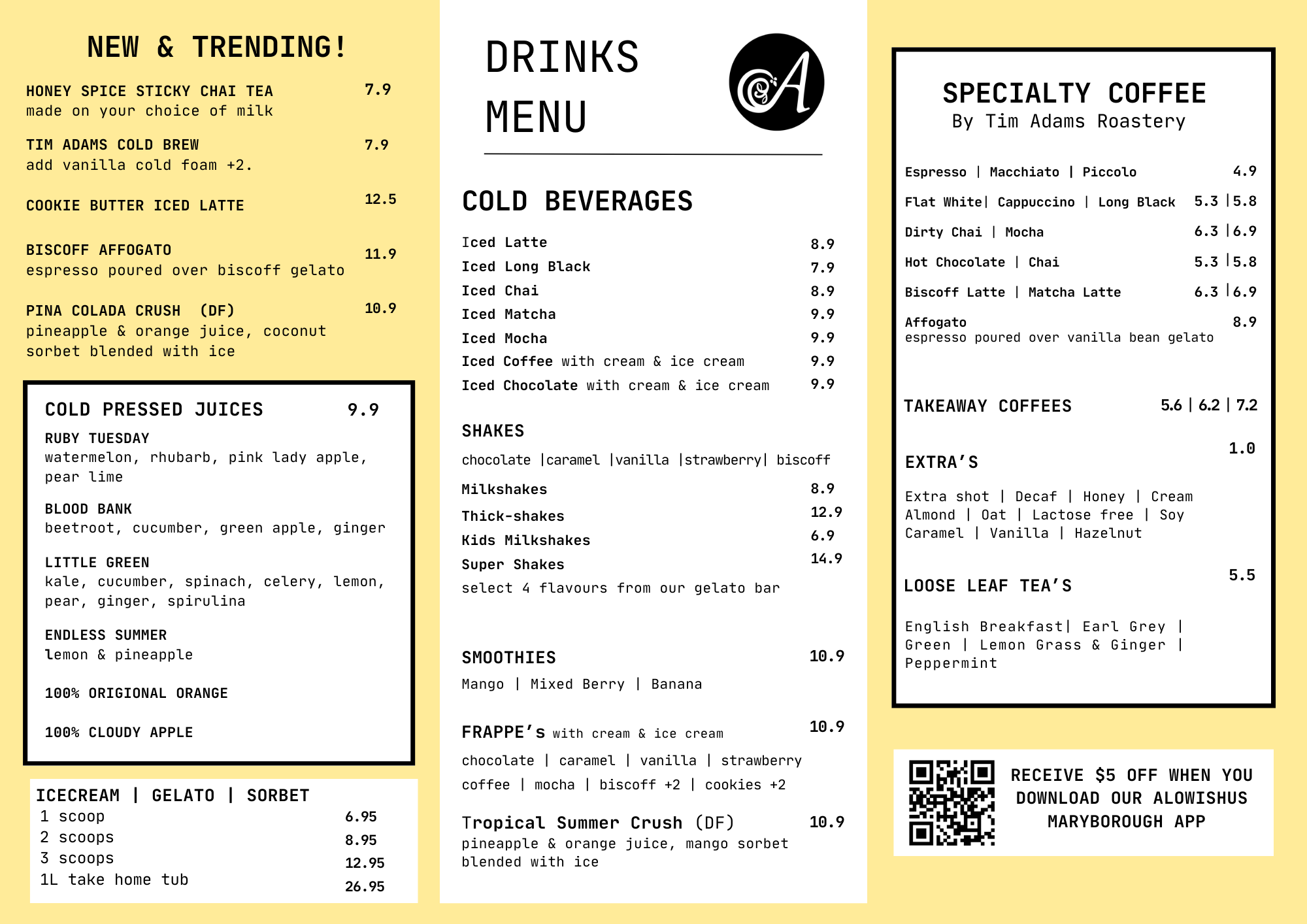 Menu Order Online Order for your table or a takeaway treat from the comfort of your phone! Order Online Download App OUR ENTIRE MENU IS AVAILABLE FOR DINE IN OR TAKEAWAY